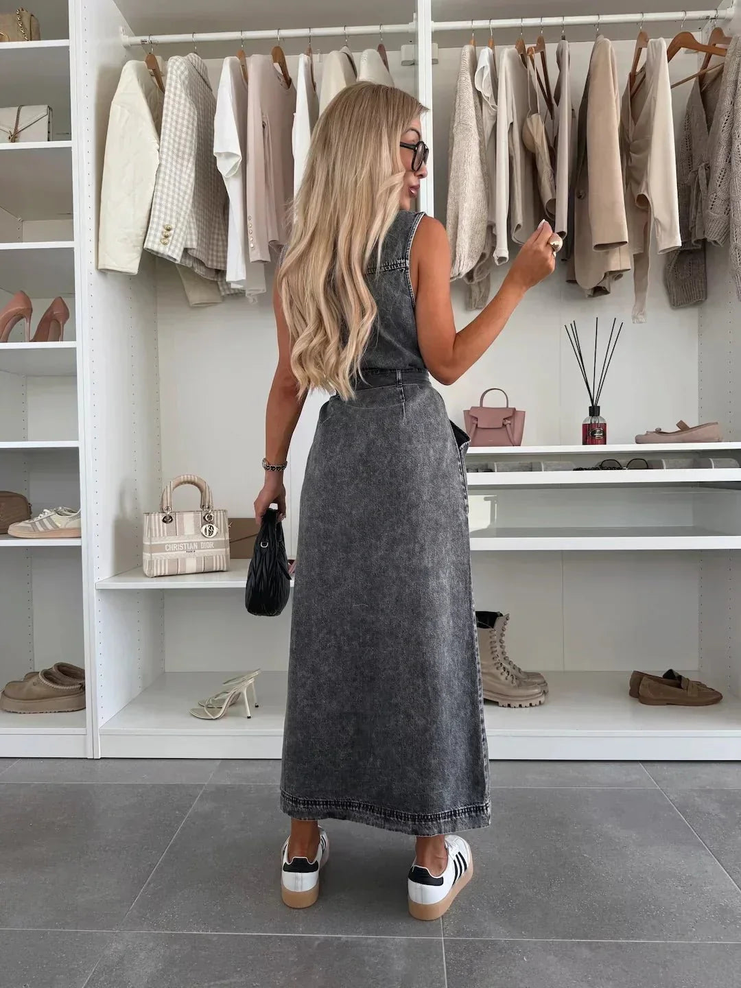 Hanna farkkumekko vakuuttaa selkeällä siluetillaan, jatkuvalla nappikiinnityksellään ja vartalonmyötäisellä leikkauksellaan. Olkaimeton muoto korostaa kauniisti hartioitasi, kun taas kestävä farkkukangas antaa voimakkaan ilmeen – täydellinen päivittäiseen käyttöön, kaupunkitapahtumiin tai rentoihin viikonloppuihin.