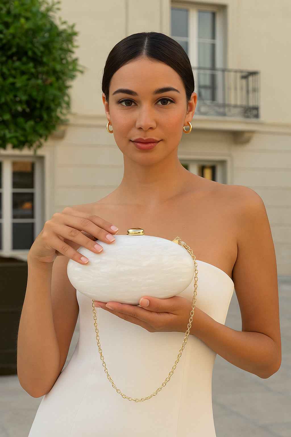 Sileän ovaalin muotonsa ja helmimäisen pinnan ansiosta tämä rannekko tuo modernia hienostuneisuutta häihin, gaaloihin ja ajattomiin iltakäyttöihin.
