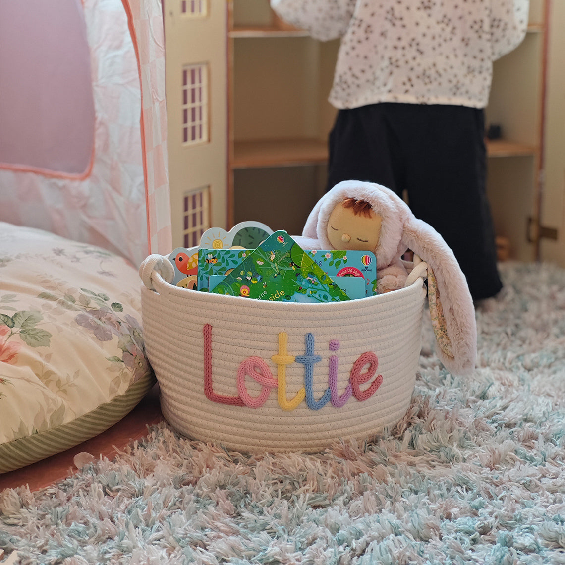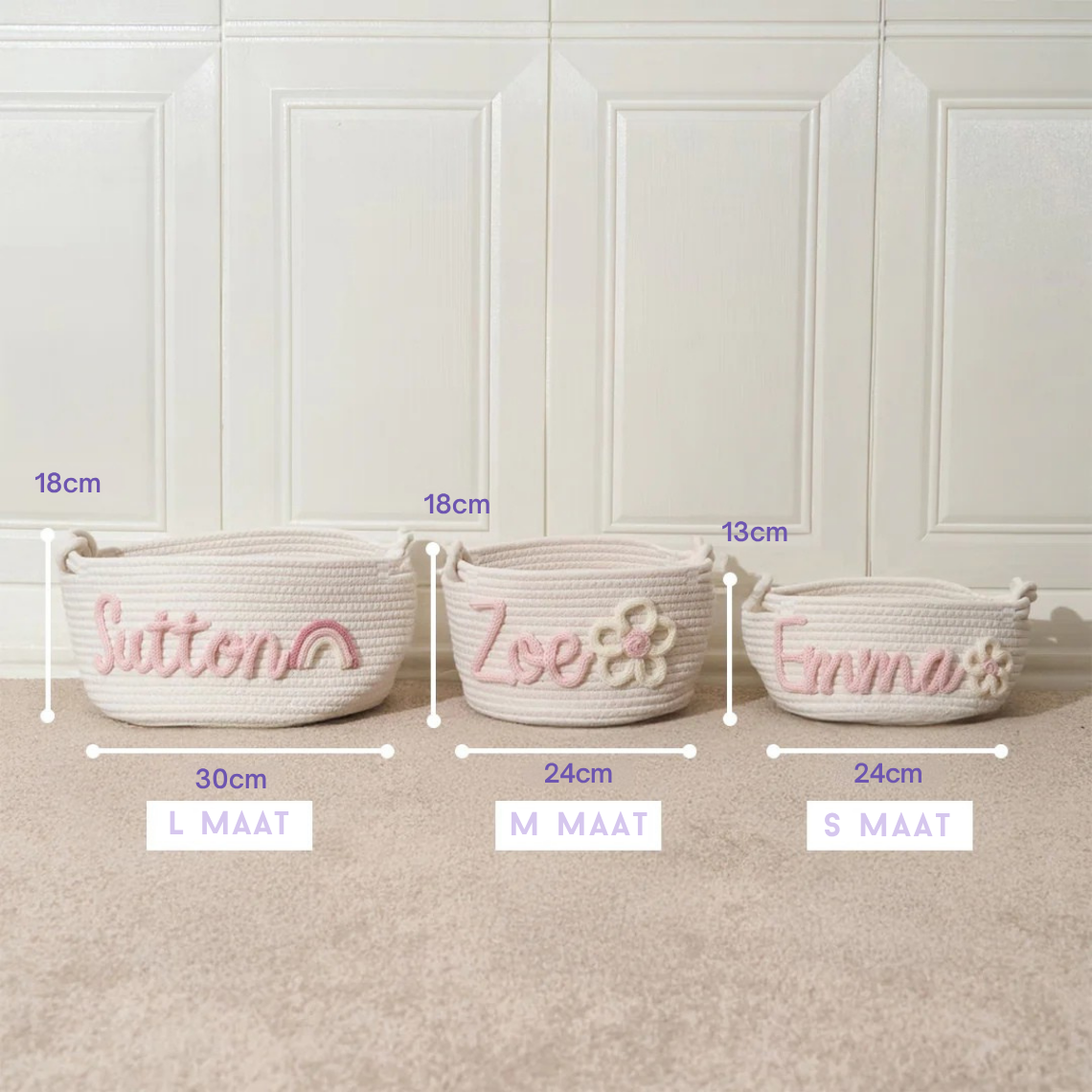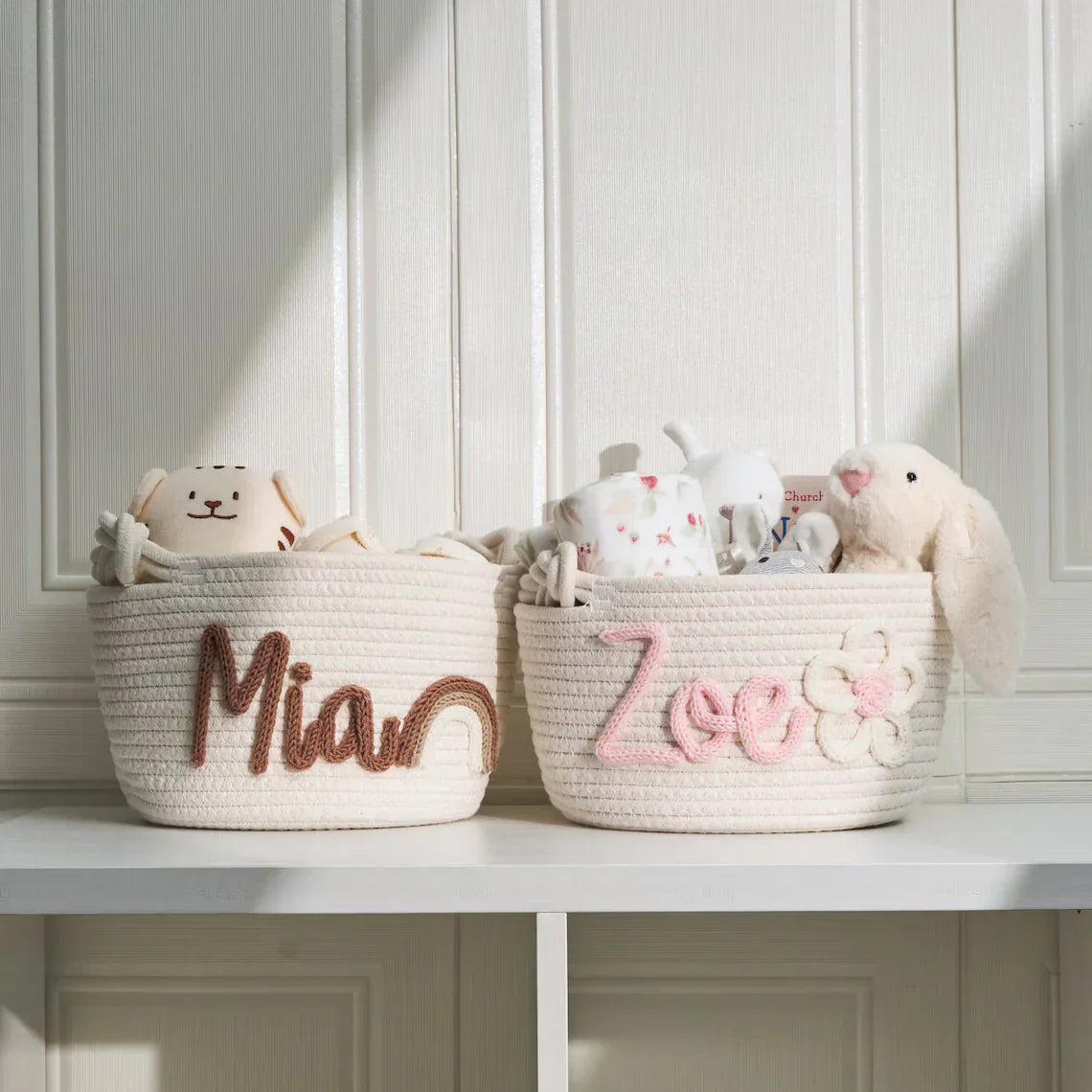 Lisää pikkuisen lastenhuoneeseen persoonallinen tunnelma käsin neulotuilla koreilla, jotka on valmistettu 100 % luonnollisesta puuvillalangasta. Nämä räätälöitävät, ympäristöystävälliset korit sopivat täydellisesti vauvakutsuille, äitiyslahjoiksi ja lastenhuoneen sisustukseen - ne ovat turvallisia herkälle iholle ja niitä voi vaalia vuosien ajan.
